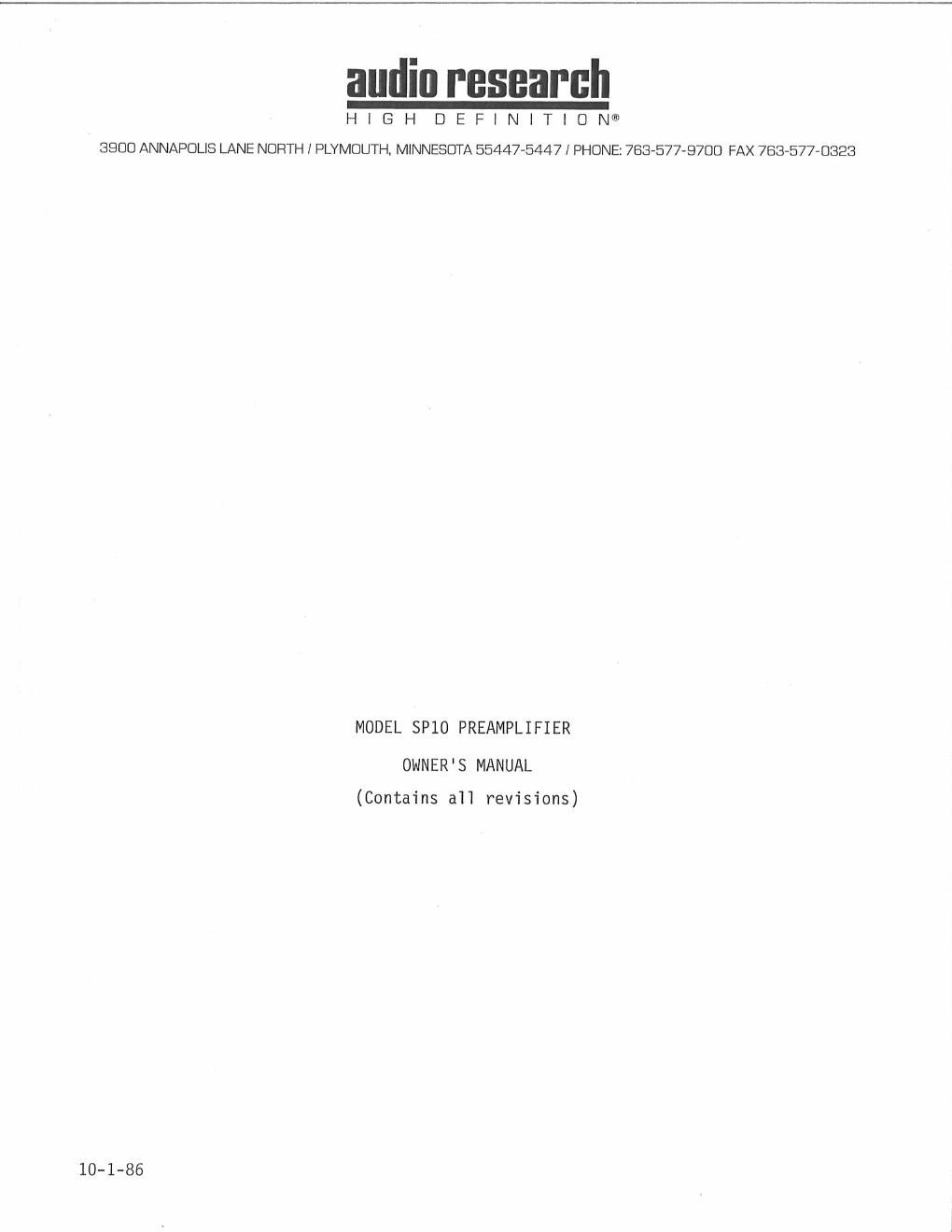 This is the 27 pages manual for audio research sp 10 owners manual.