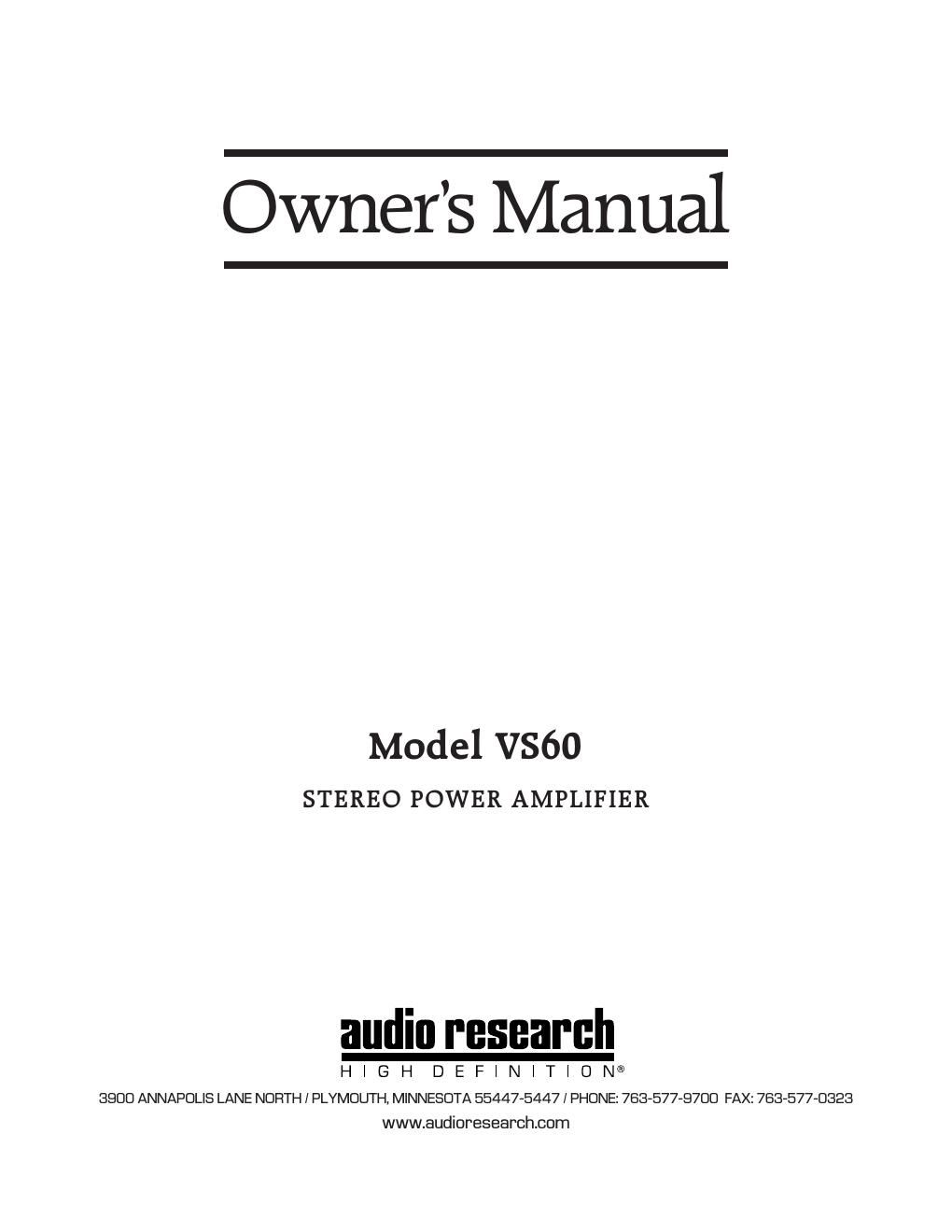 This is the 8 pages manual for audio research vs 60 owners manual.