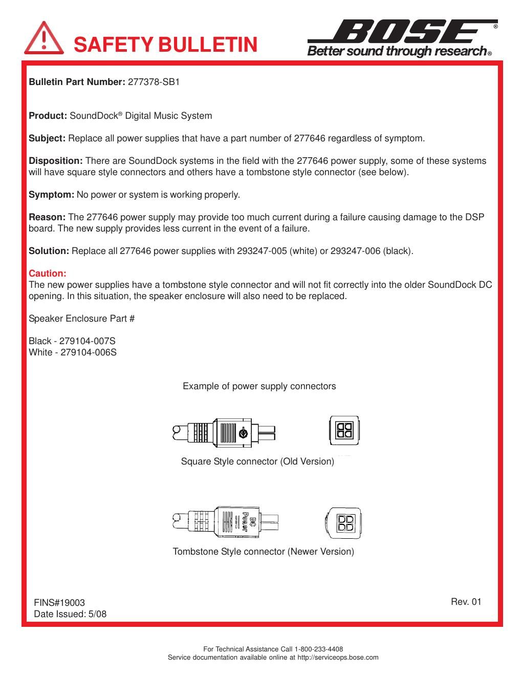 This is the 1 pages manual for bose sounddock sb1 r01.