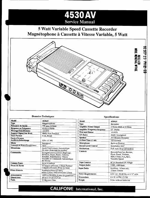 This is the 7 pages manual for Califone 4530 Av Cassette Recorder.
