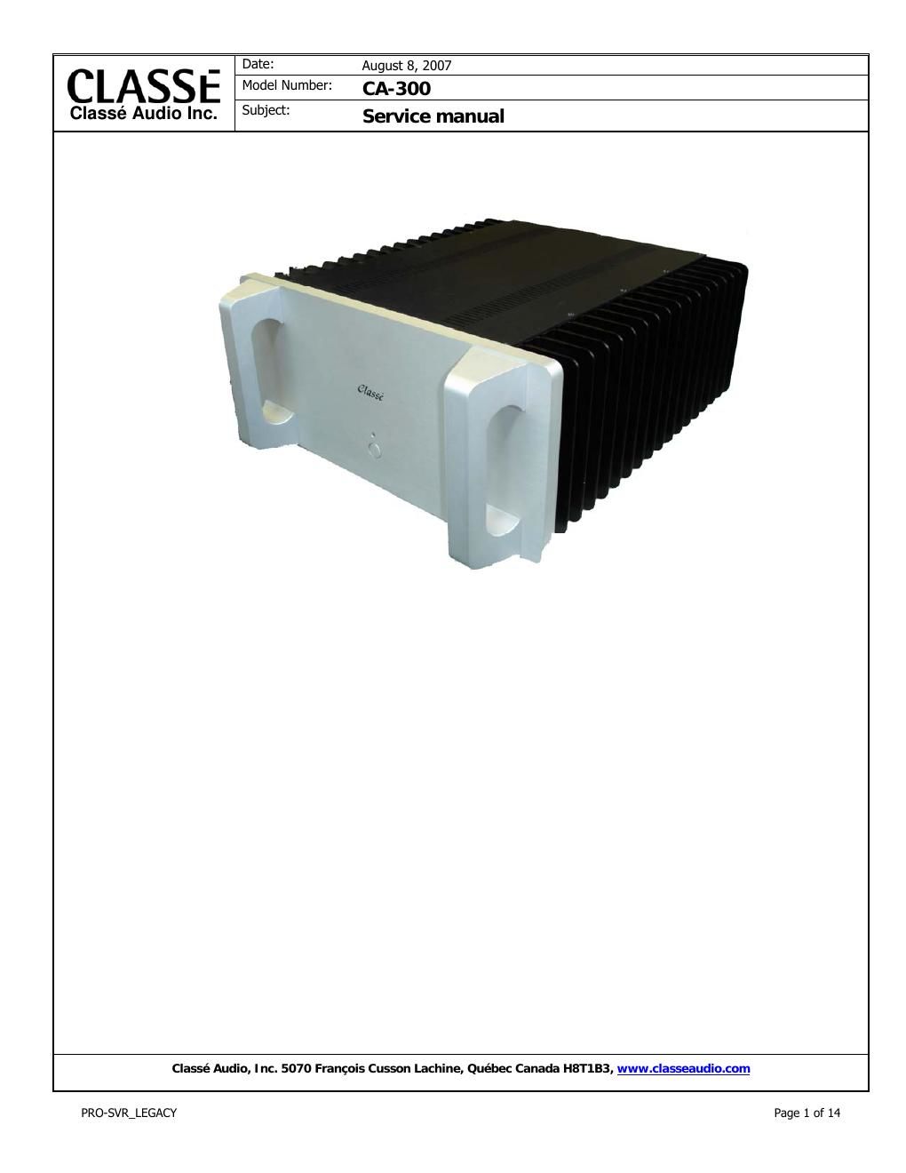 This is the 20 pages manual for classe audio ca 300 service manual.