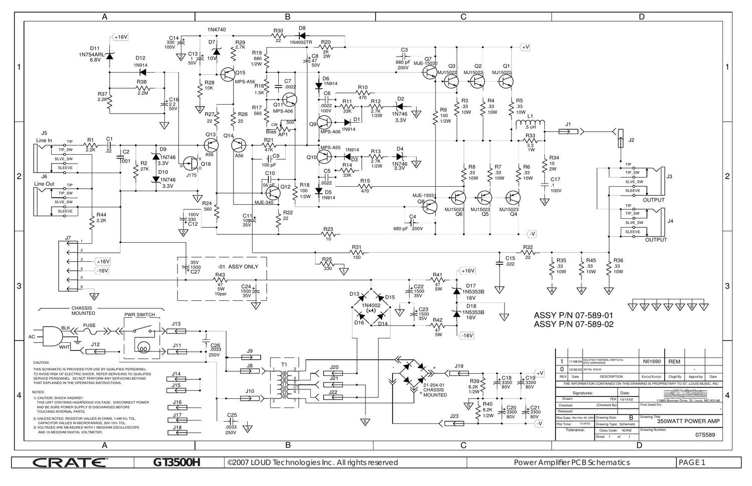 Crate gt 3500H gt X3500H Power Amp 07S589 Schematic