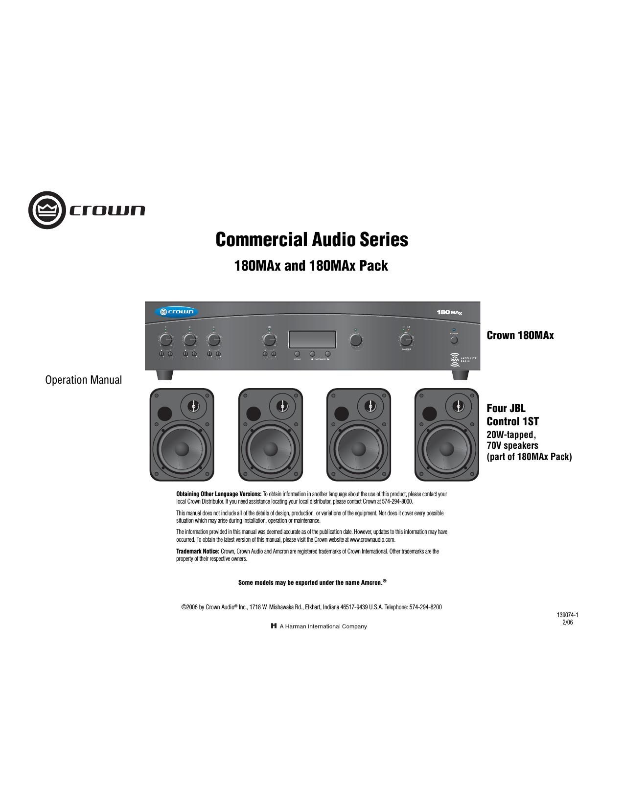 Crown 180MAx Operation Manual
