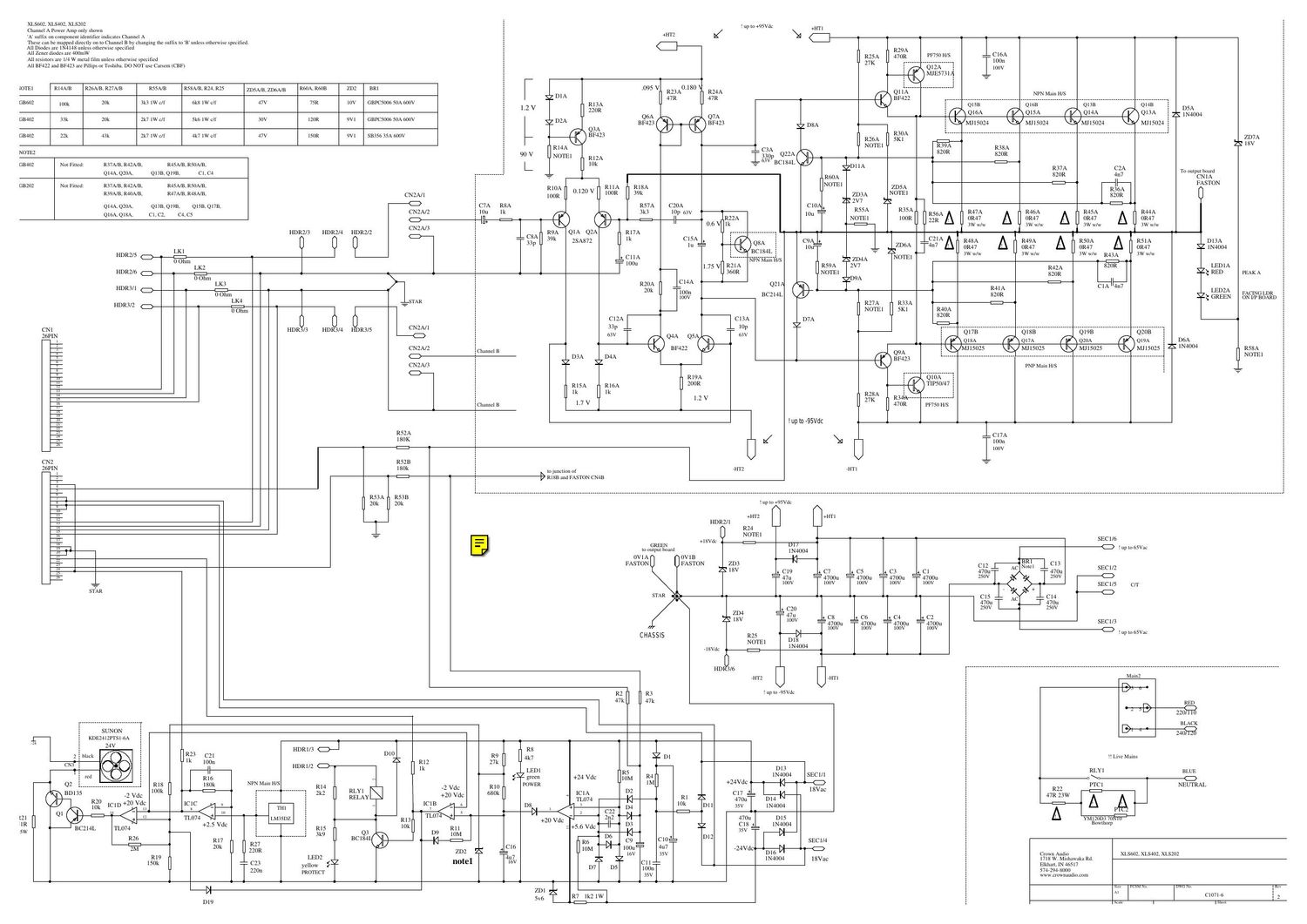 Crown XLS 202 XLS 402 XLS 602 Schematic