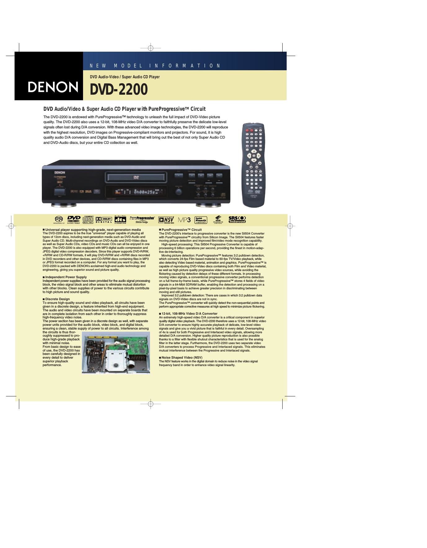 This is the 2 pages manual for Denon DVD 2200 Brochure.