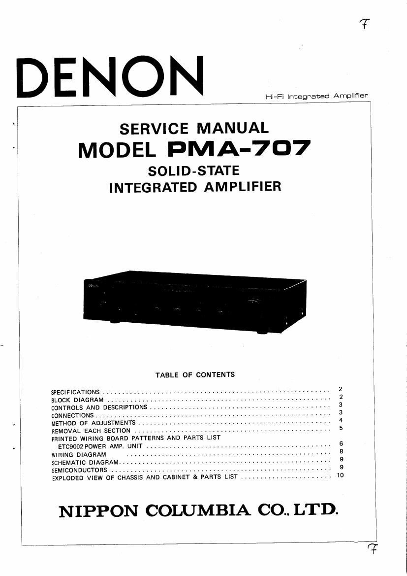 This is the 12 pages manual for Denon PMA 707 Service Manual.