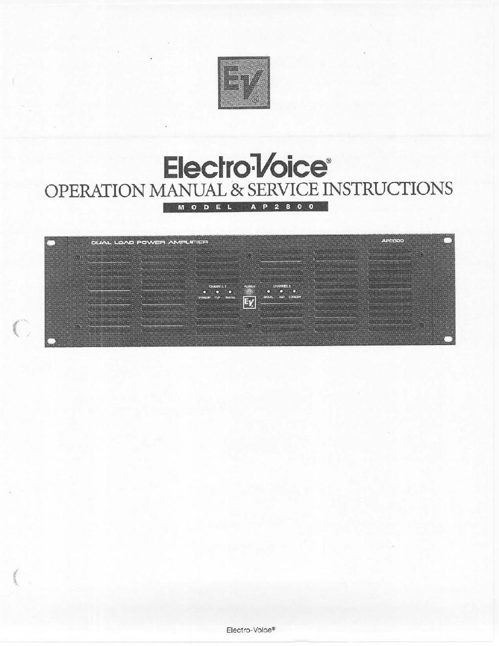 This is the 20 pages manual for electro voice ap 2800 owners service manual.