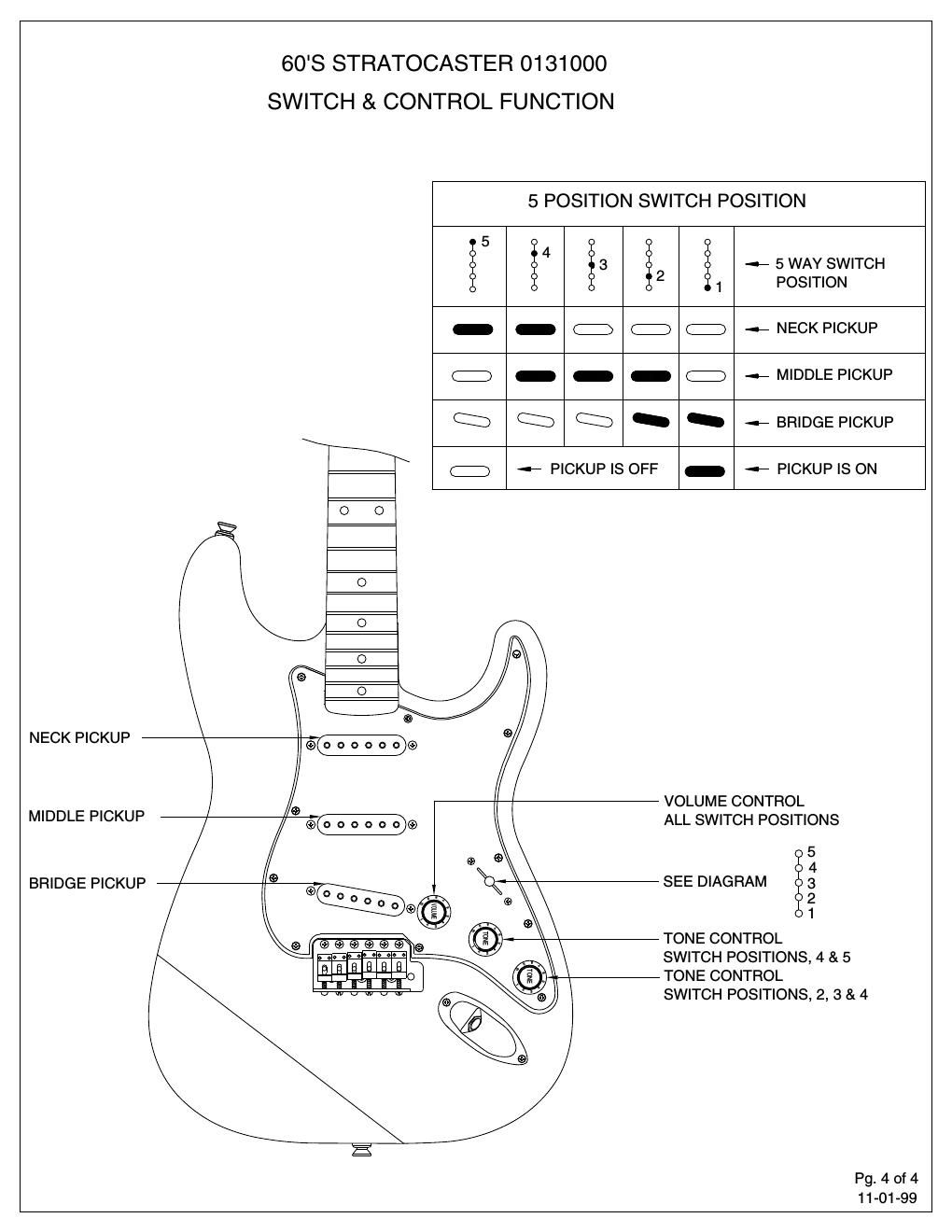 This is the 1 pages manual for fender 60s strat switch control functions.