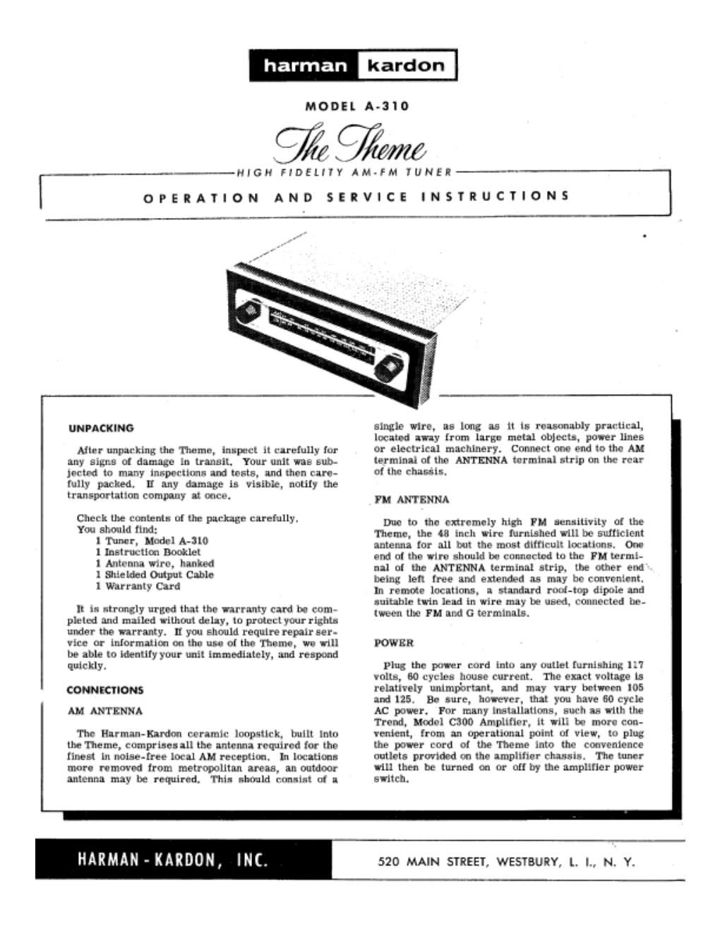 This is the 4 pages manual for harman kardon a 310 owners manual.