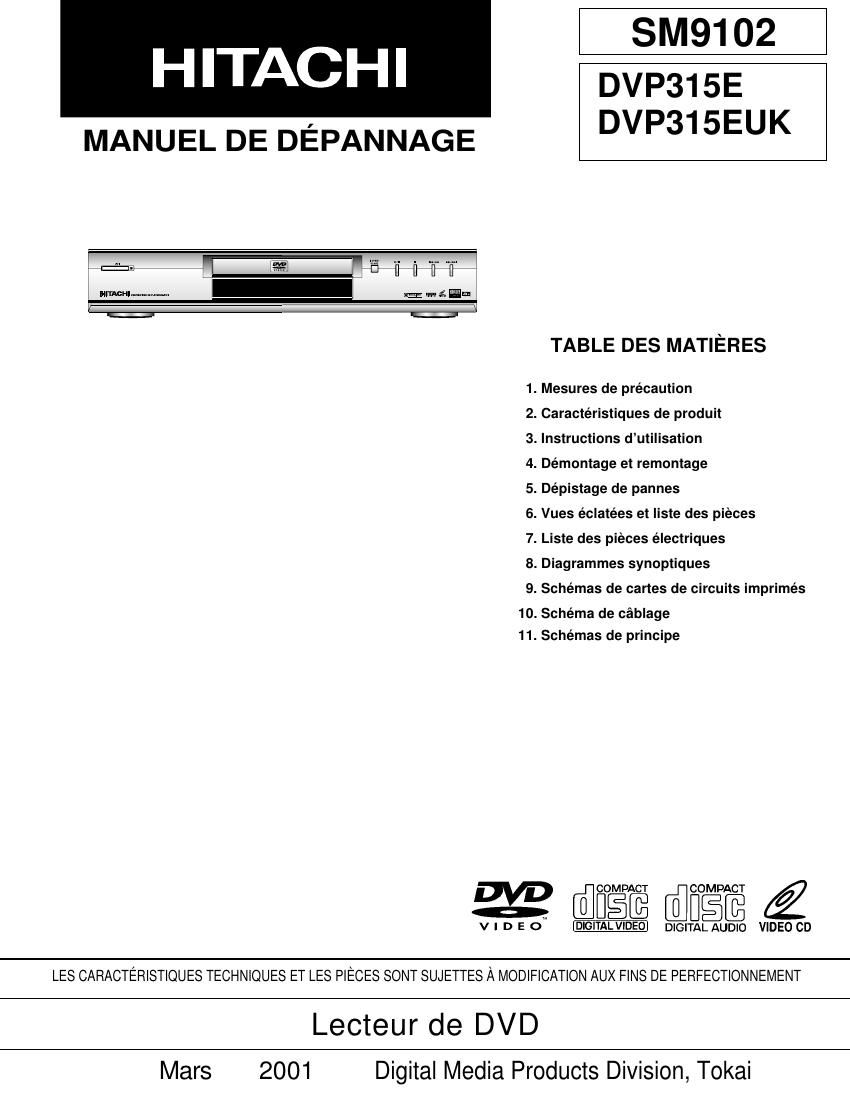 This is the 50 pages manual for Hitachi DVP 315 EUK Service Manual.
