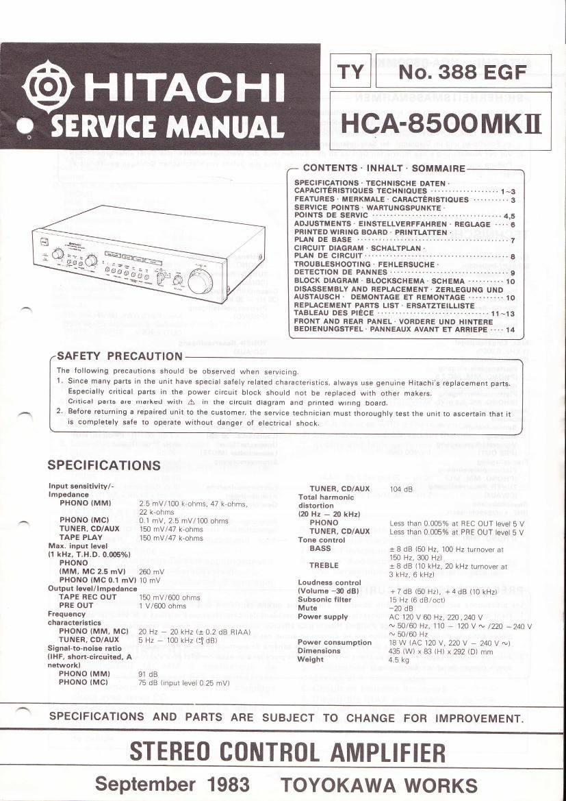 This is the 18 pages manual for Hitachi HCA 8500 Mk3 Service Manual.