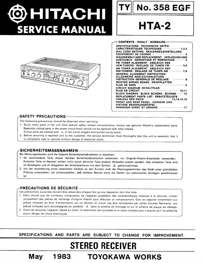This is the 16 pages manual for Hitachi HTA 2 Service Manual.