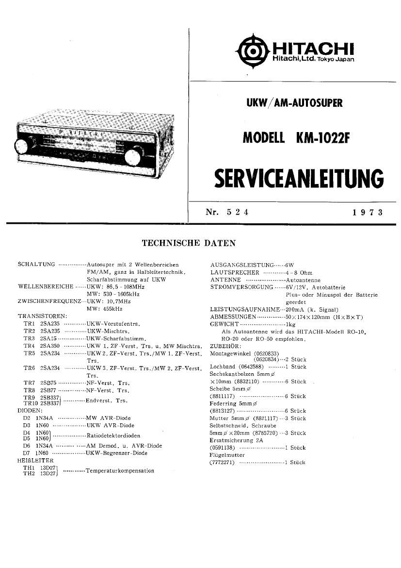 This is the 4 pages manual for Hitachi KM 1022 F Service Manual.