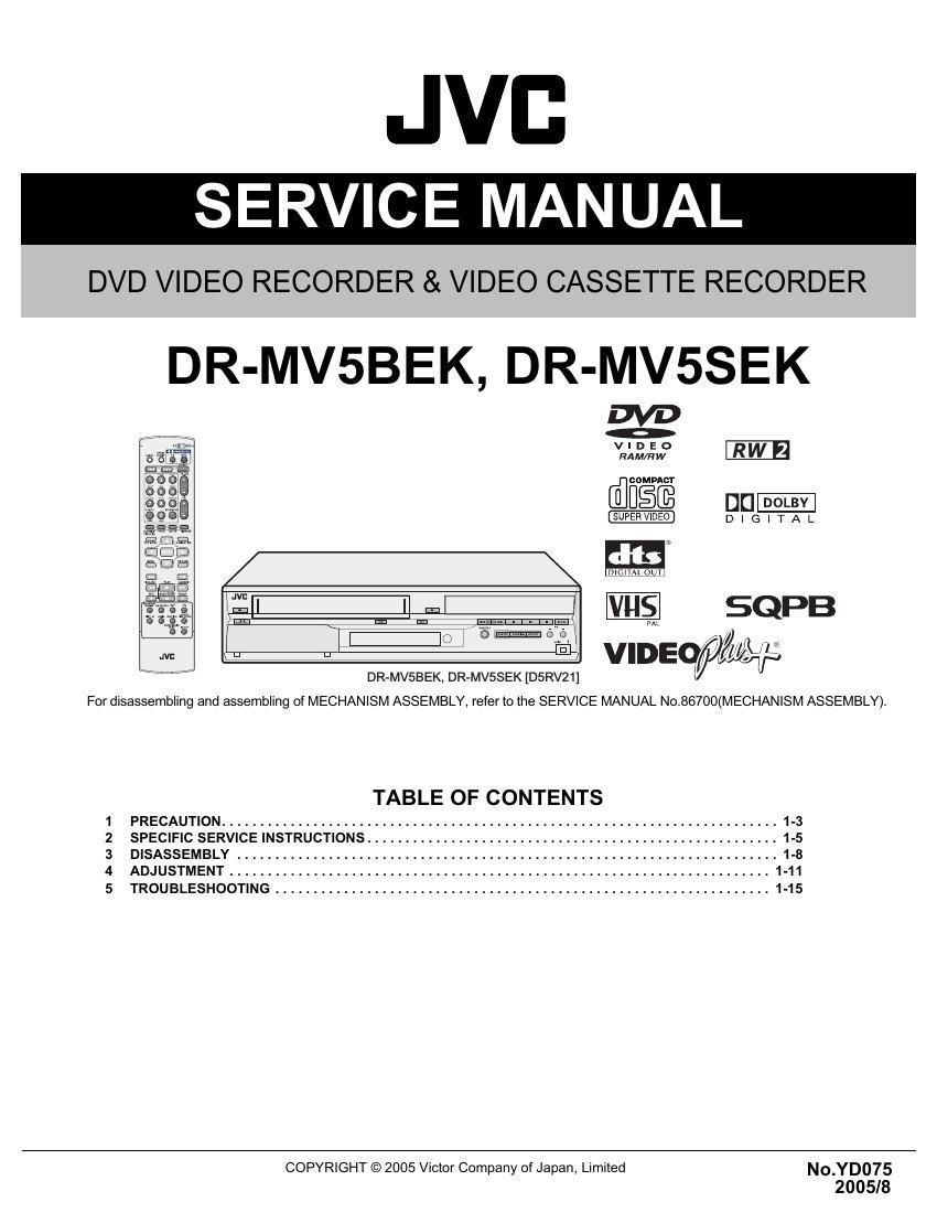 This is the 89 pages manual for Jvc DRMV 5 SEK Service Manual.