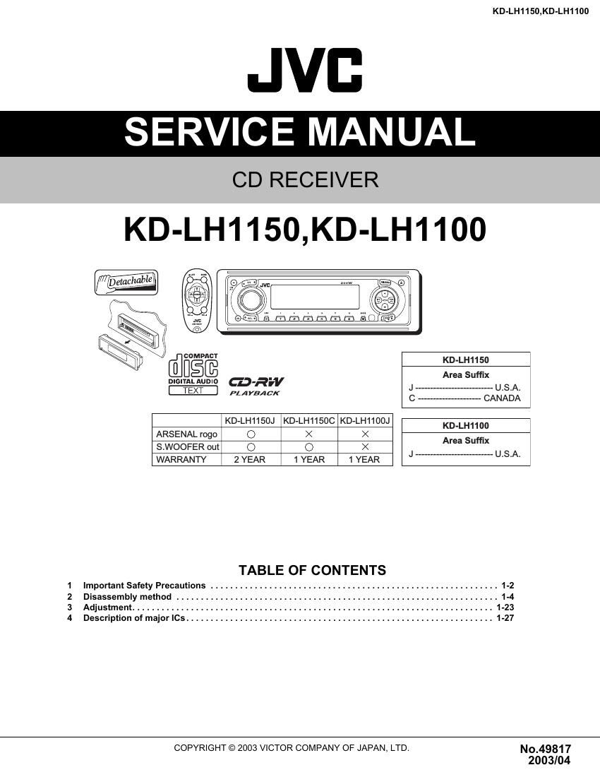 This is the 72 pages manual for Jvc KDLH 1150 Service Manual.