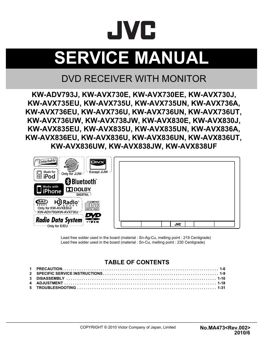 This is the 122 pages manual for Jvc KWAVX 830 E Service Manual.