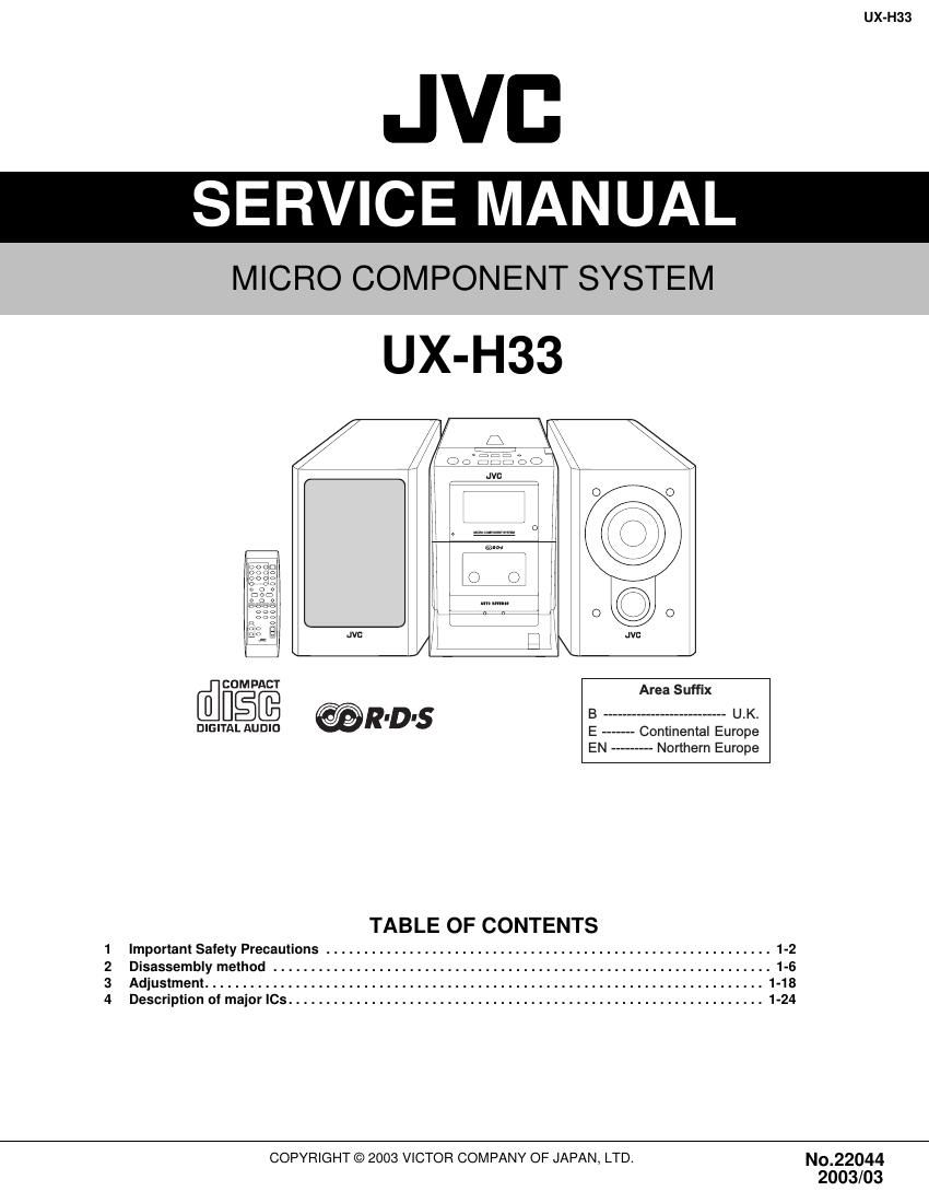 This is the 71 pages manual for Jvc UXH 33 Service Manual.