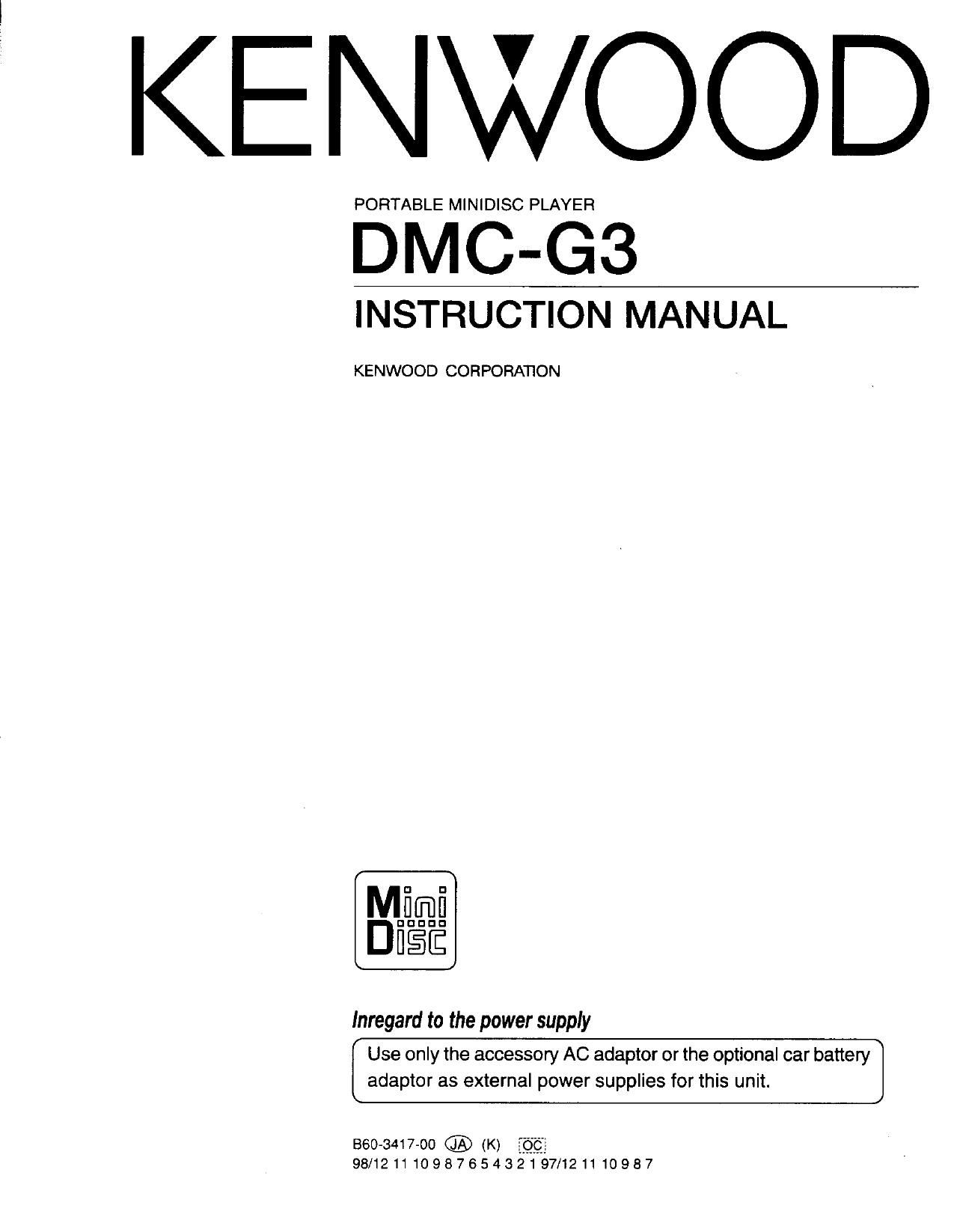 This is the 32 pages manual for Kenwood DMCG 3 Owners Manual.