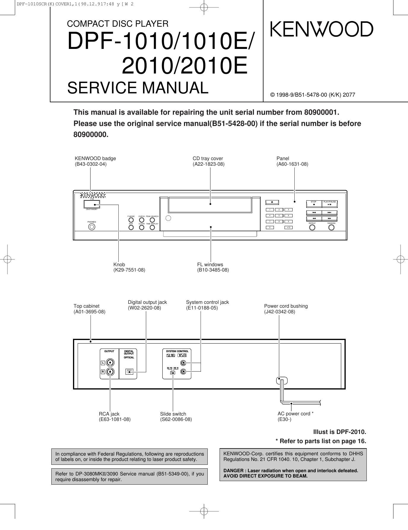 This is the 14 pages manual for Kenwood DPF 1010 E Service Manual.