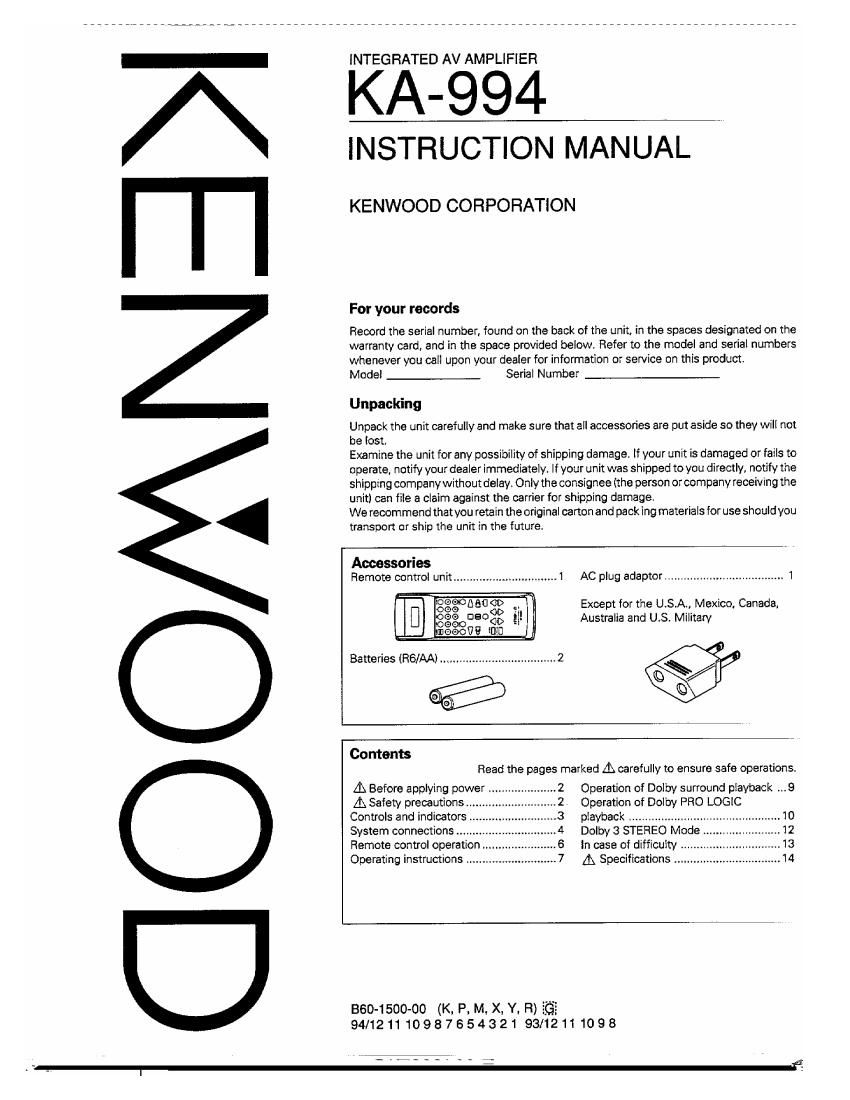 Kenwood KA 994 Owners Manual