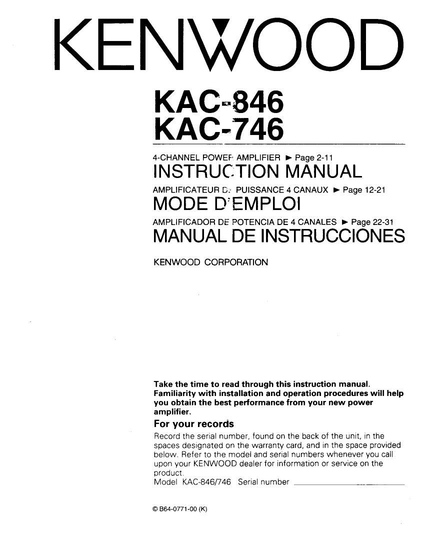 Kenwood KAC 846 Owners Manual