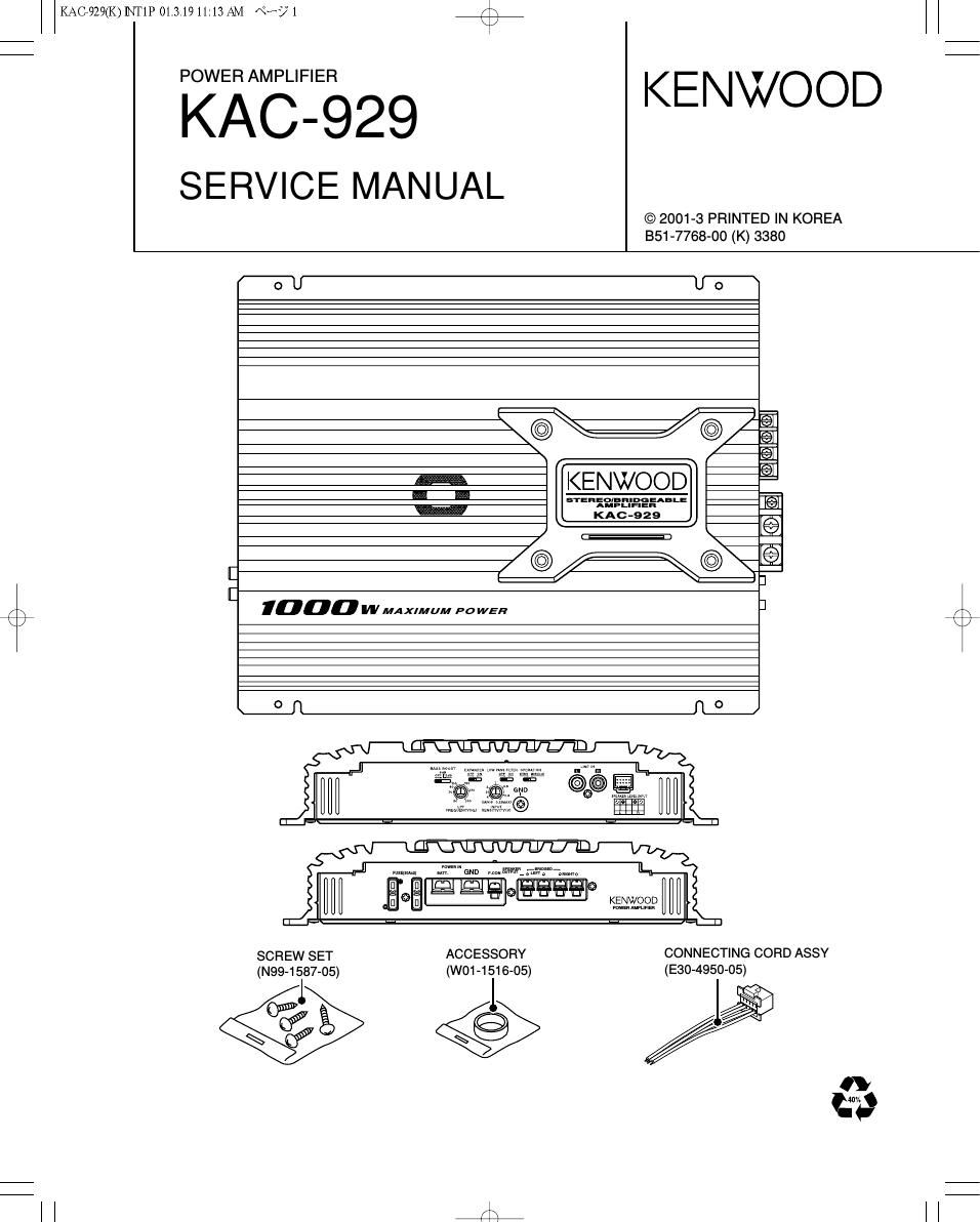 This is the 13 pages manual for Kenwood KAC 929 Service Manual.
