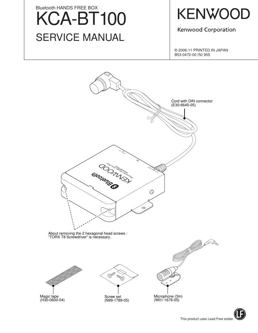 This is the 16 pages manual for Kenwood KCABT 100 Service Manual.