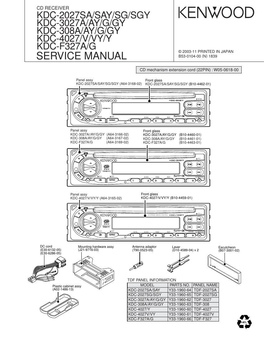 This is the 40 pages manual for Kenwood KDC 2027 SA Service Manual.