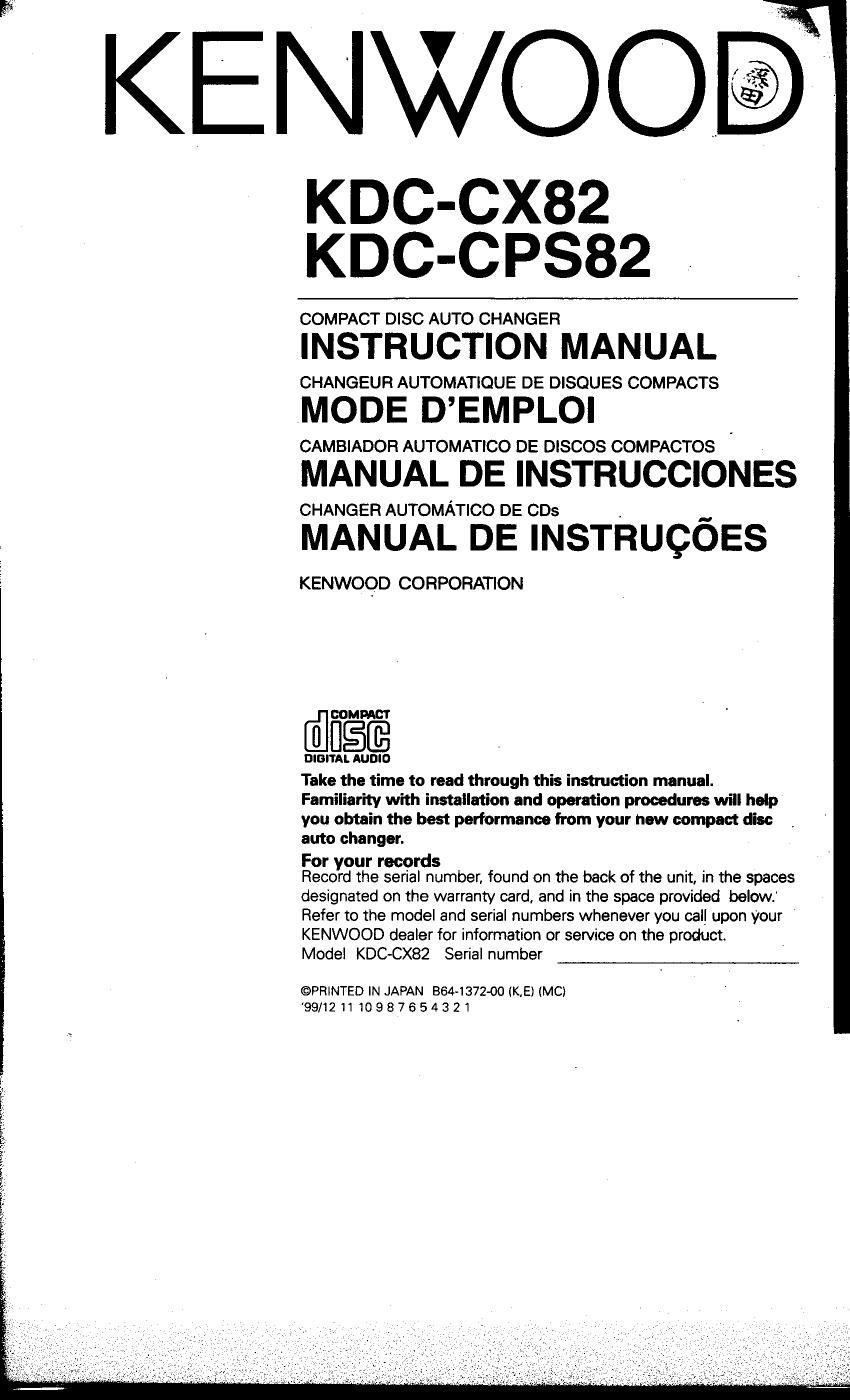 This is the 20 pages manual for Kenwood KDCCX 82 Owners Manual.