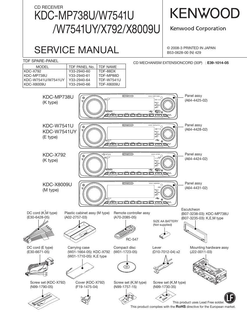 This is the 54 pages manual for Kenwood KDCW 7541 UY Service Manual.