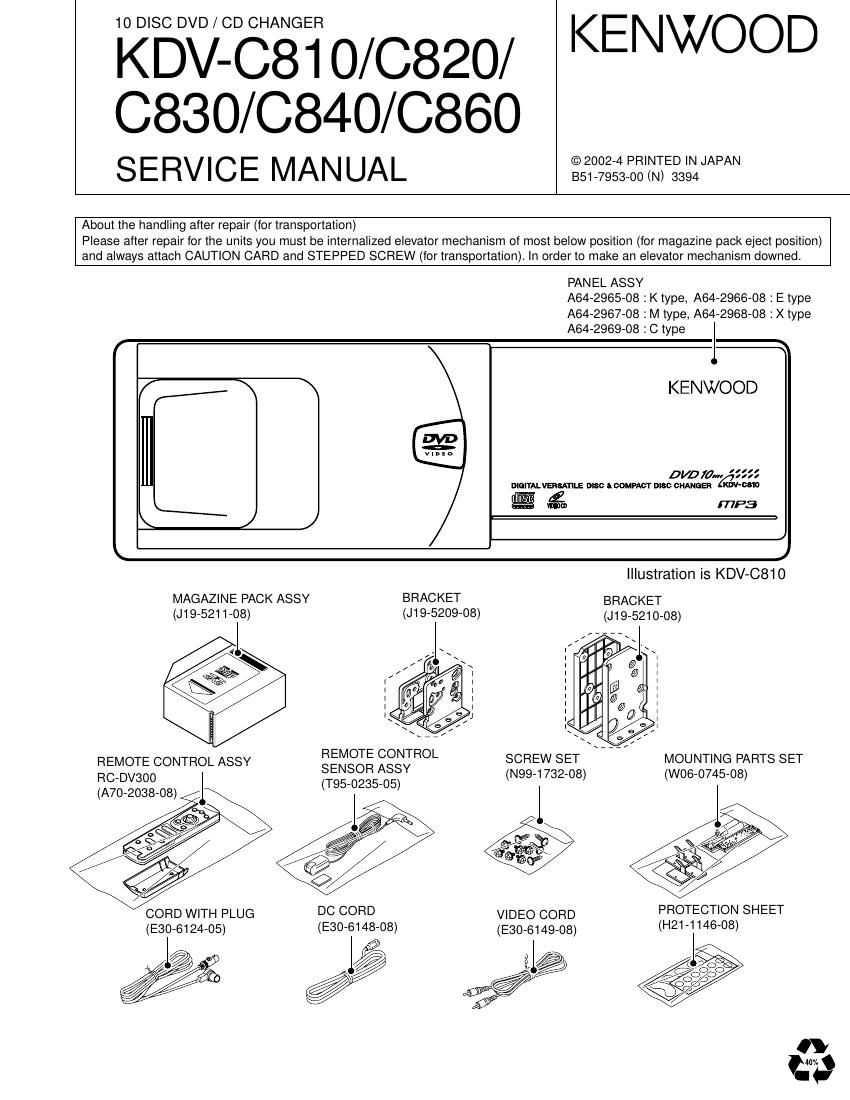 This is the 36 pages manual for Kenwood KDVC 830 Service Manual.