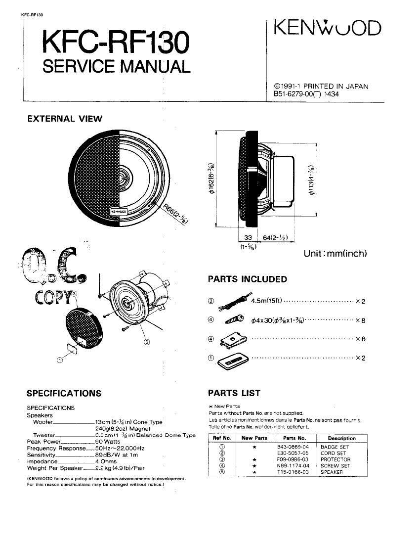 This is the 1 pages manual for Kenwood KFCRF 130 Service Manual.