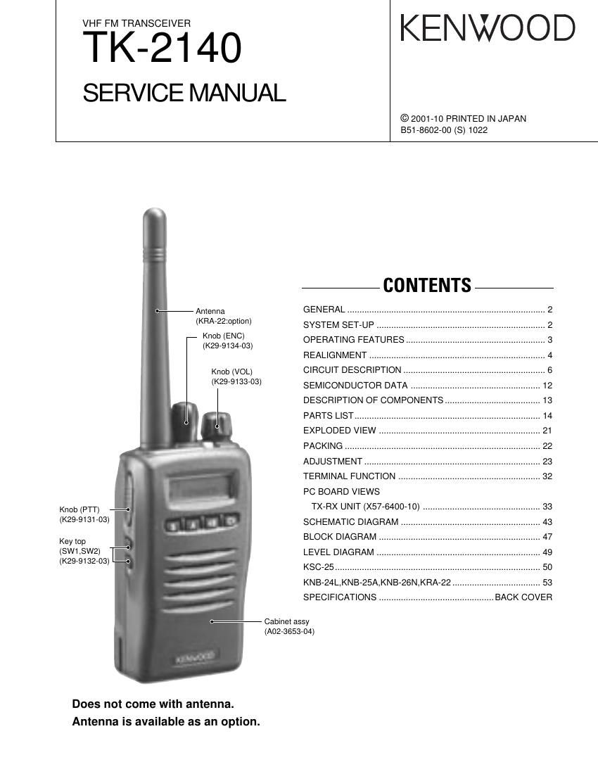 This is the 45 pages manual for Kenwood TK 2140 Service Manual.