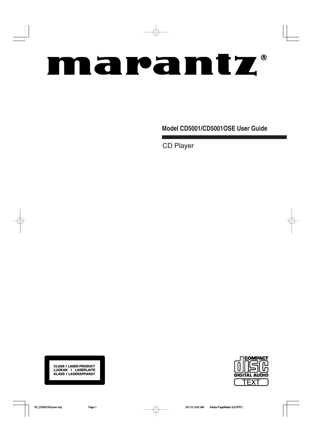 This is the 33 pages manual for Marantz CD 5001 Owners Manual.