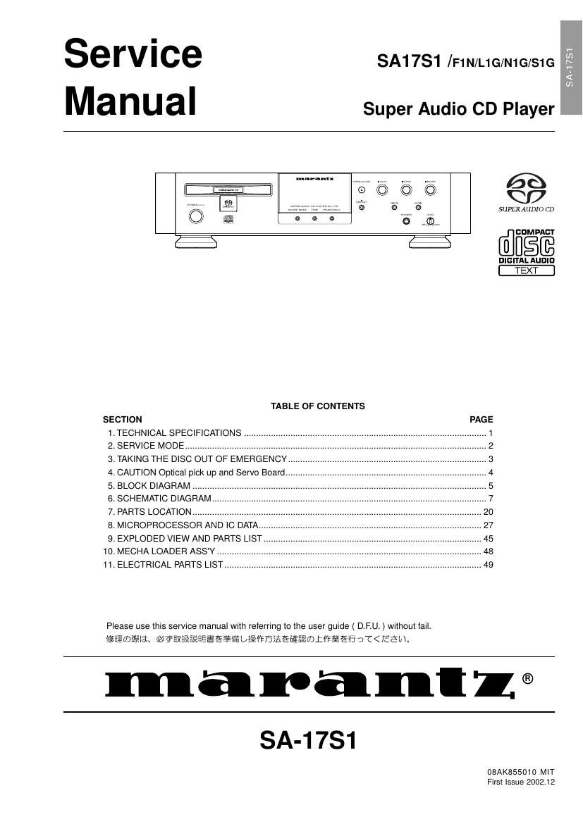 This is the 46 pages manual for Marantz SA 17 S 1 Service Manual.