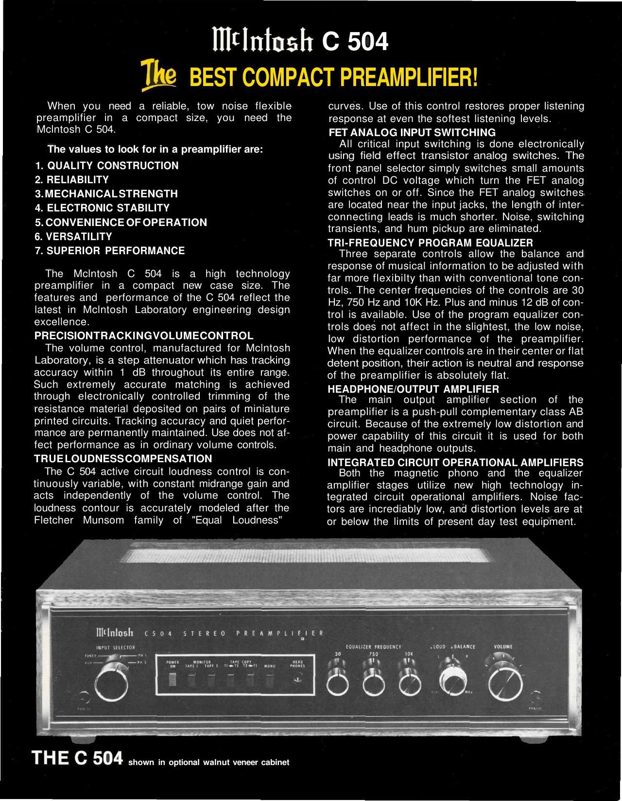 This is the 2 pages manual for McIntosh C 504 Brochure.