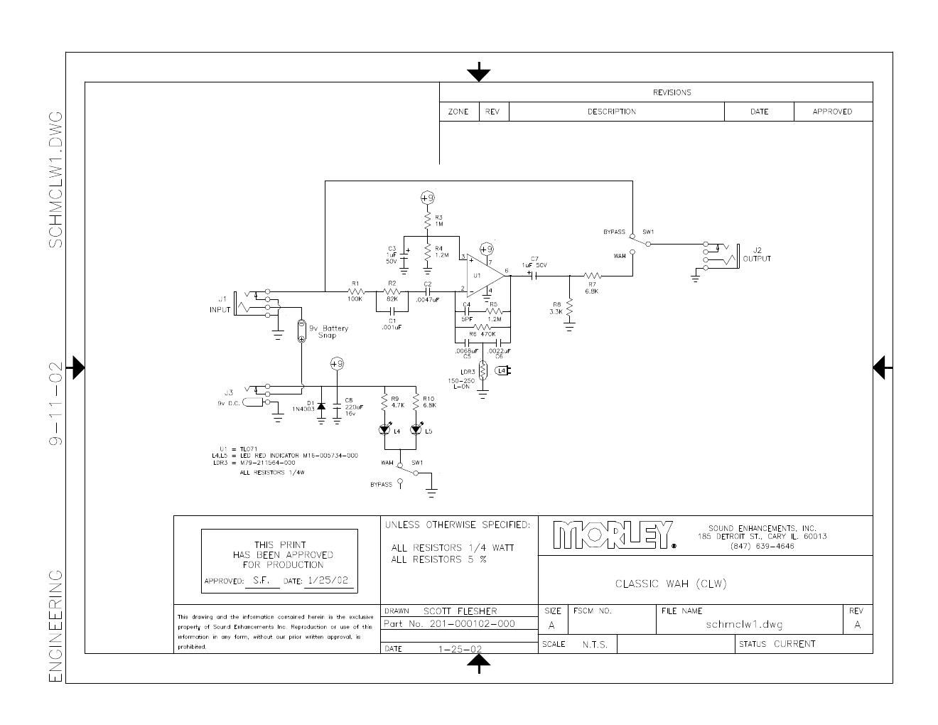 This is the 1 pages manual for Morley CLW Classic Wah Schematic.