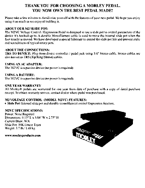 morley m2vc passive volumetage control expression pedal instruction insert full page |