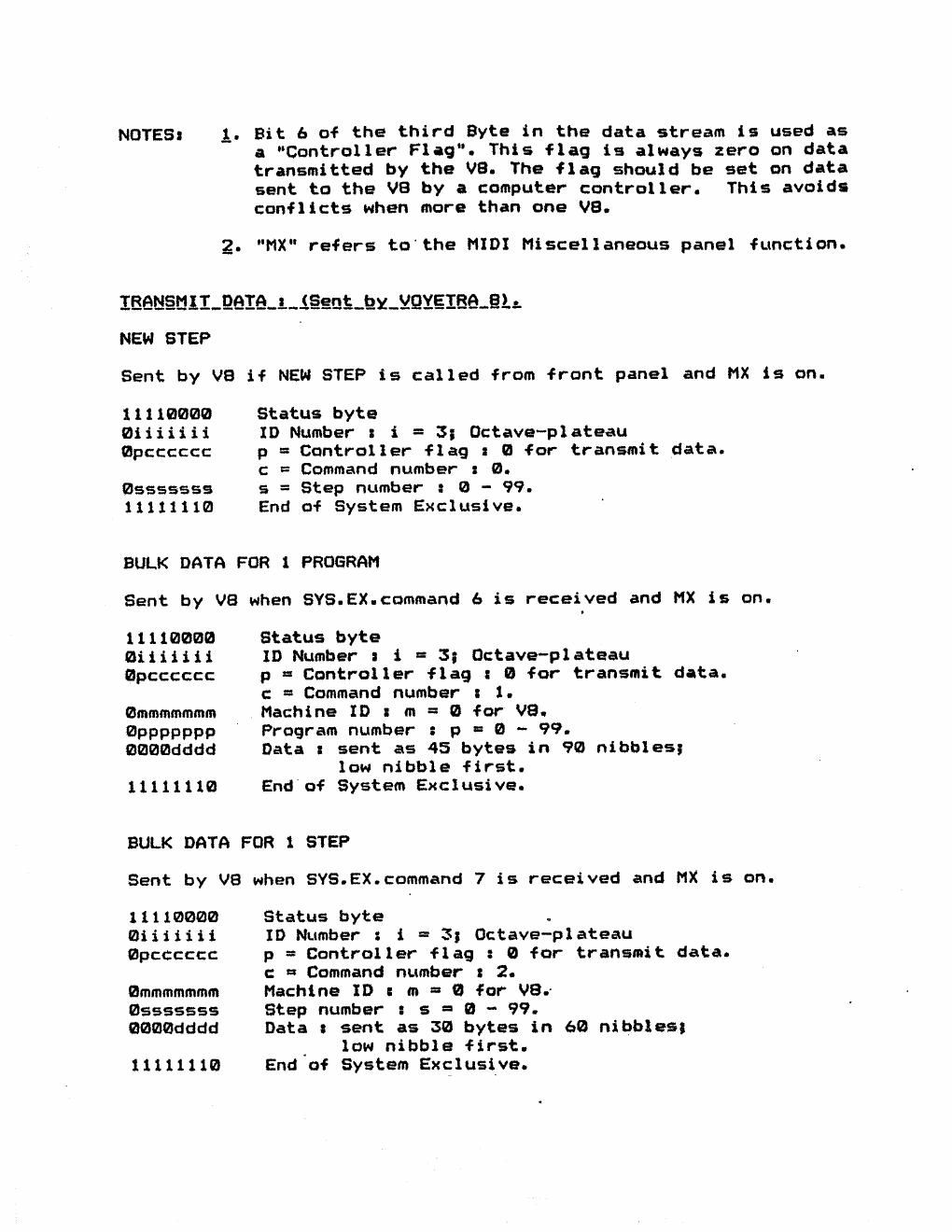 This is the 7 pages manual for octave voyetra 8 sysex implementation.