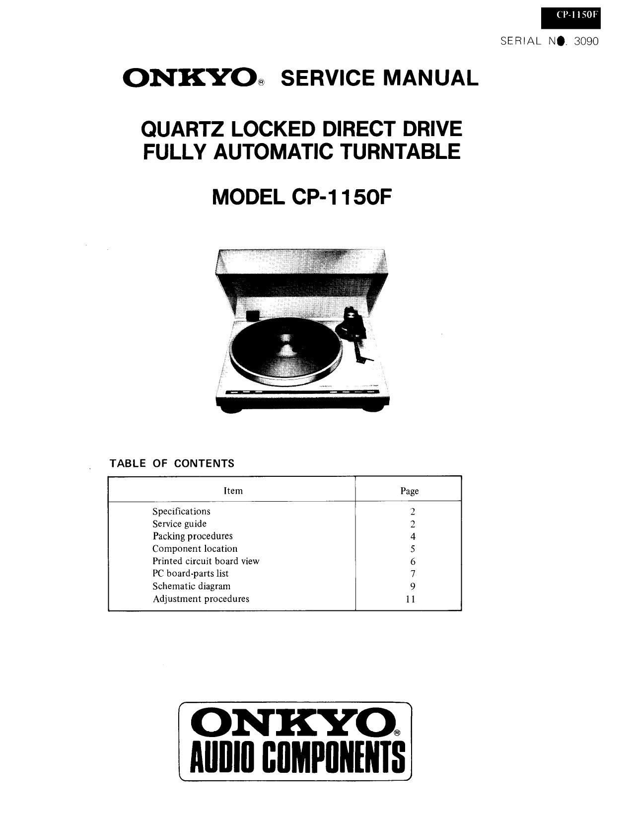 This is the 8 pages manual for Onkyo CP 1150 F Service Manual.