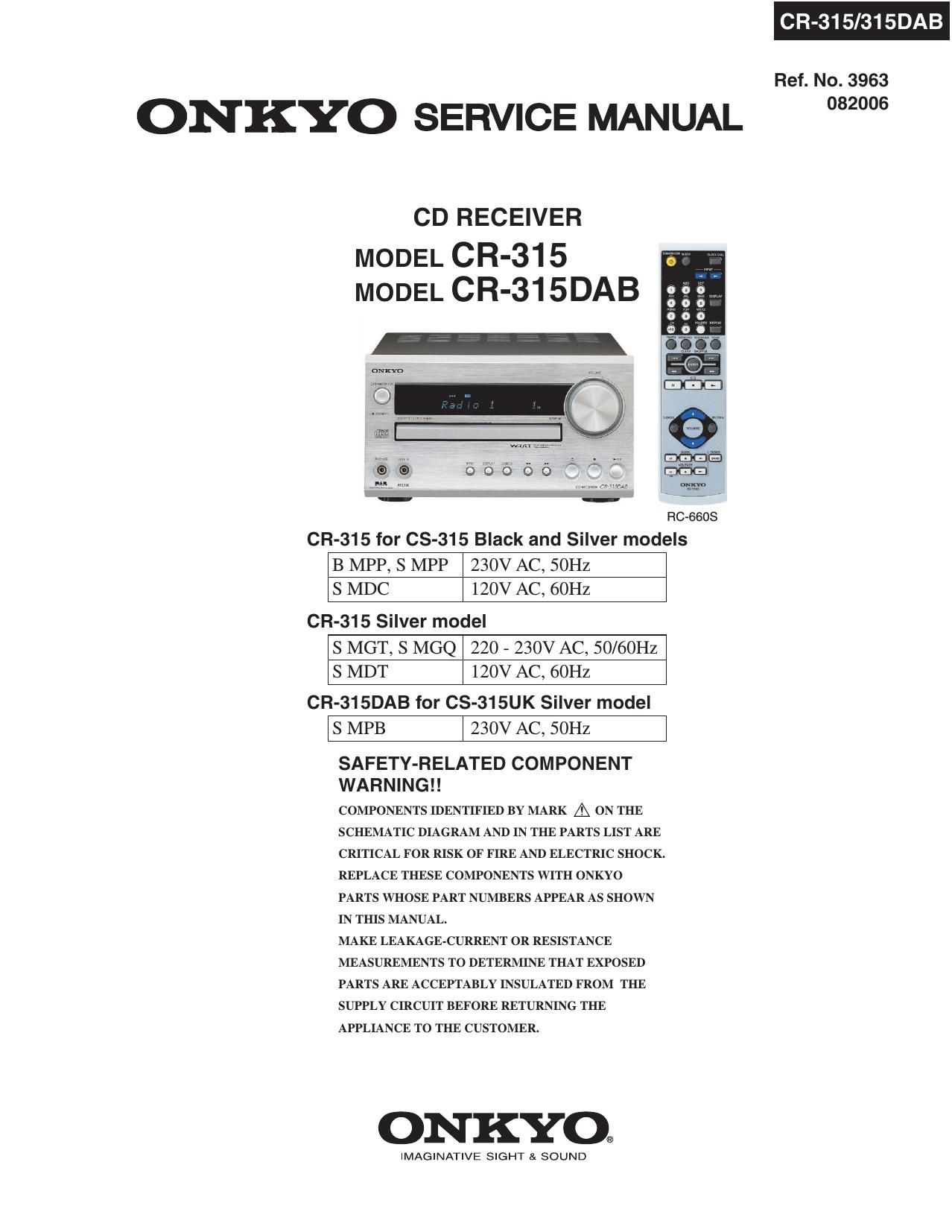 This is the 37 pages manual for Onkyo CR 315 DAB Service Manual.