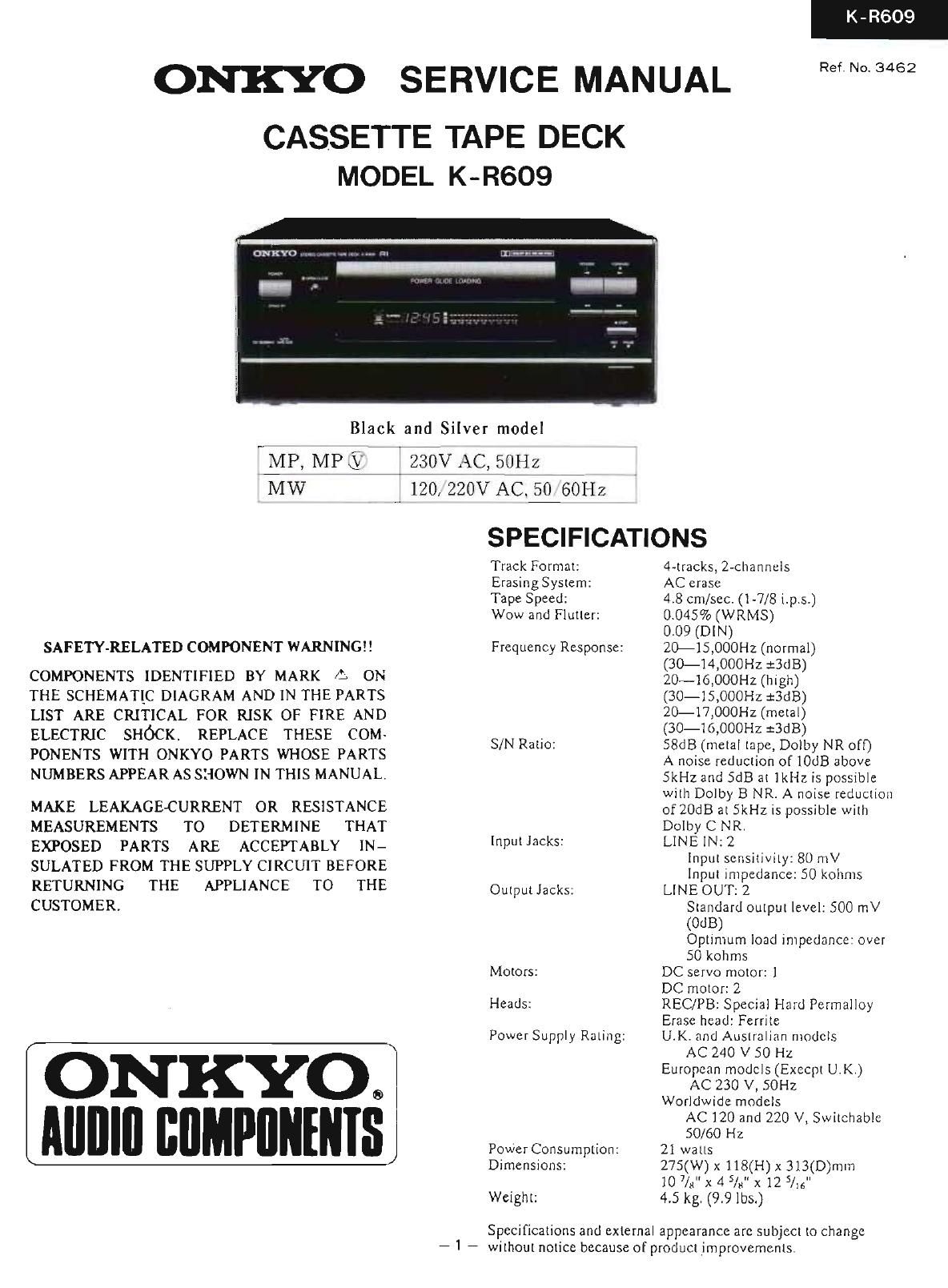 This is the 16 pages manual for Onkyo KR 609 Service Manual.