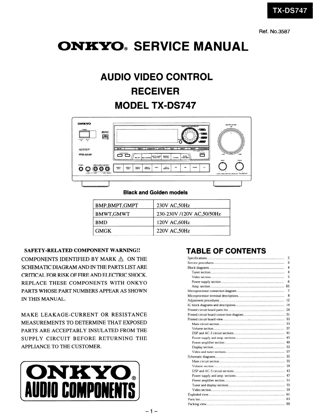 This is the 37 pages manual for Onkyo TXDS 747 Service Manual.
