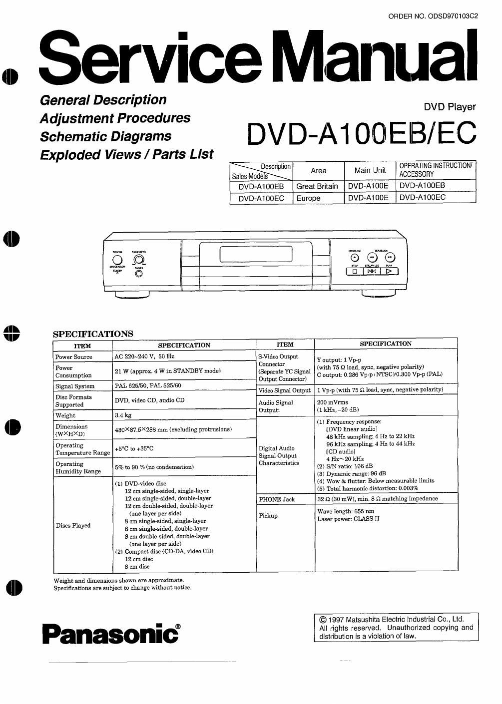 This is the 74 pages manual for panasonic dvd a 100 service manual.