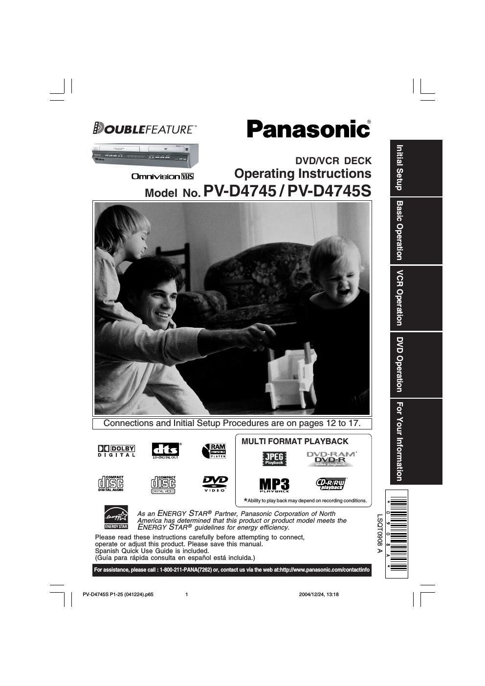 This is the 72 pages manual for panasonic pv d 4745 owners manual.