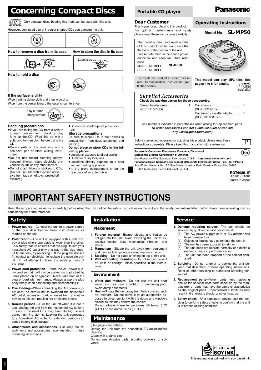 Panasonic sl mp 50 owners manual