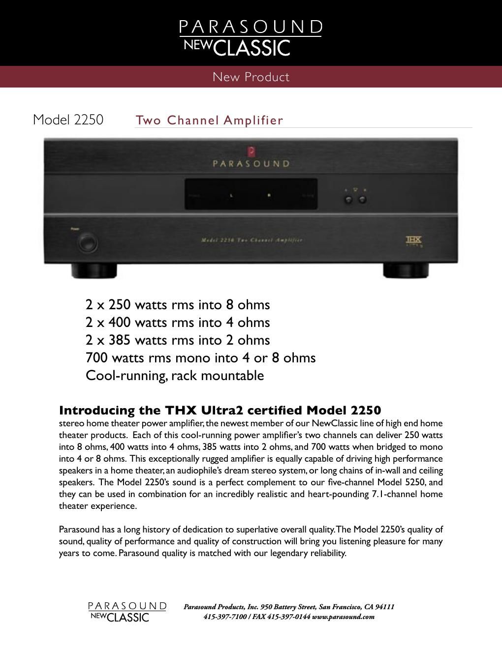 This is the 2 pages manual for parasound 2250 brochure.