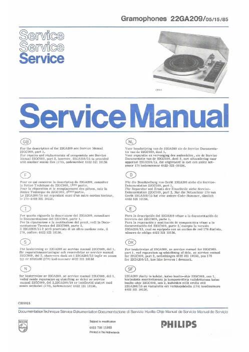 This is the 7 pages manual for philips 22 ga 209 service manual.