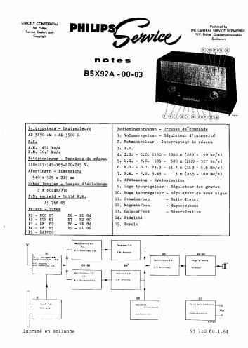 Philips b 5 x 92 a service manual
