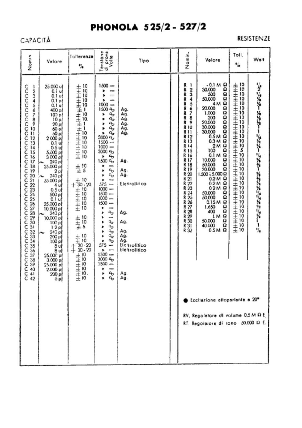 This is the 1 pages manual for phonola 525 2 527 2 components.